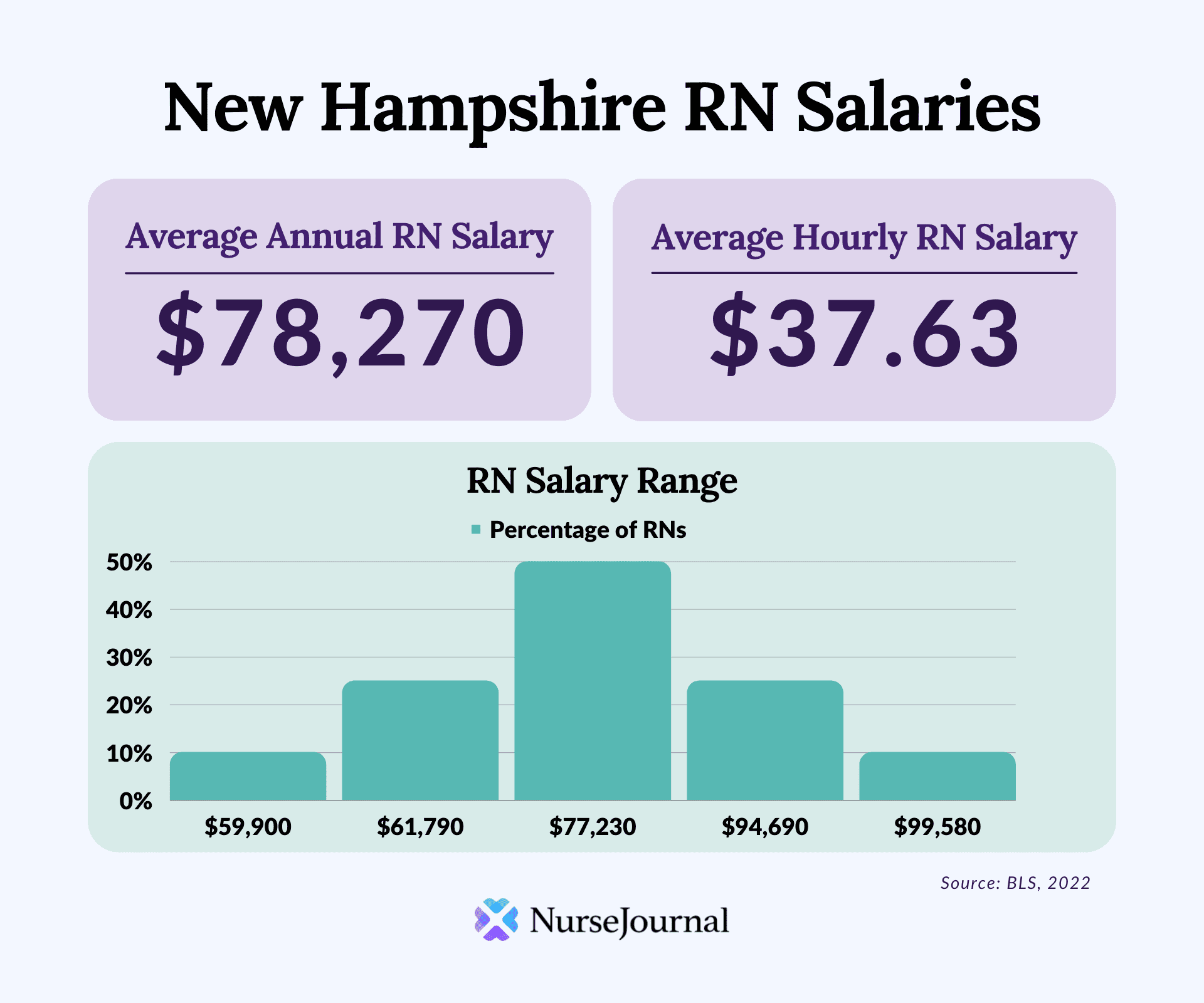 - Average New Hampshire RN Salary: $78,270 (Ranks 18th among all states)