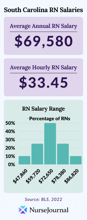 - Average South Carolina RN Salary: $69,580 (Ranks 39th among all states)